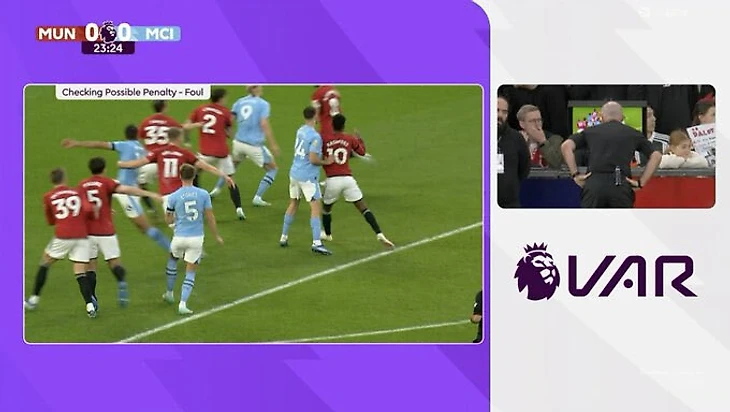 Хейлунд схватил Родри рукой в штрафной «МЮ» – судья Тирни после ВАР поставил пенальти в дерби. Холанд забил