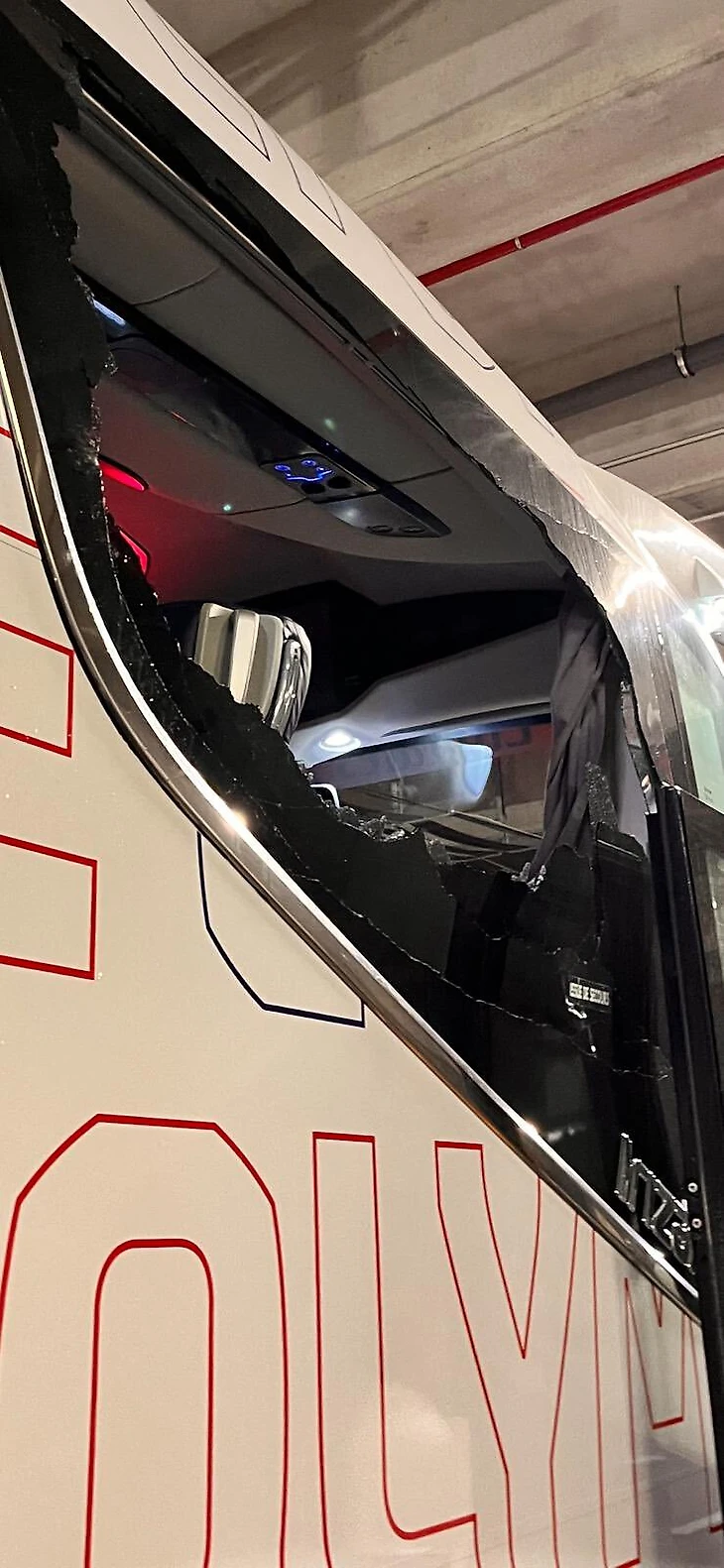 Как сообщает Le Parisien, автобус «Лиона» был забросан камнями по пути на стадион «Велодром». У транспортного средства разбито окно.