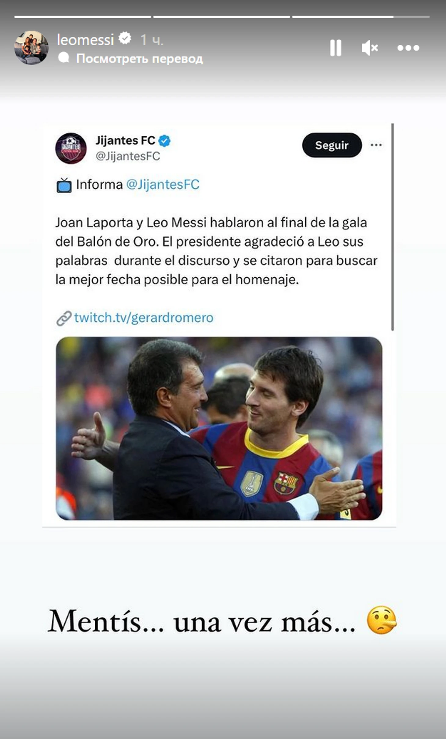 «Ты лжешь в очередной раз», – написал Месси, добавив эмодзи с длинным носом.