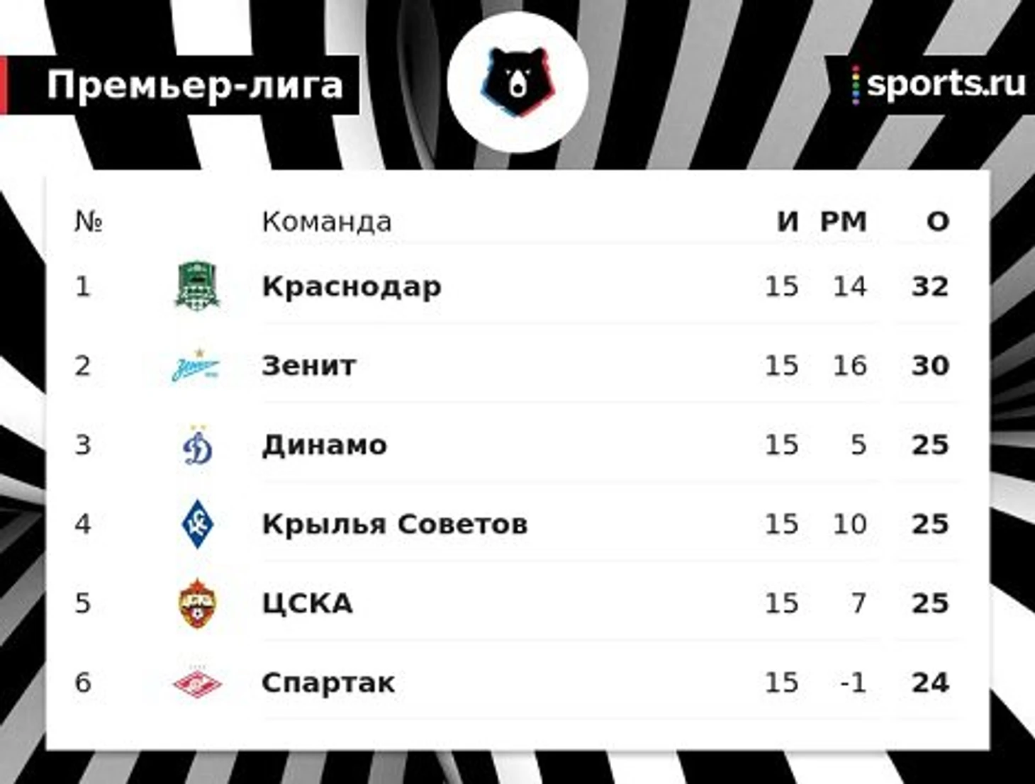 На той же отметке прошлого сезона «Спартак» занимал 2-е место с 32 очками, на 7 баллов отставая от шедшего первым «Зенита».