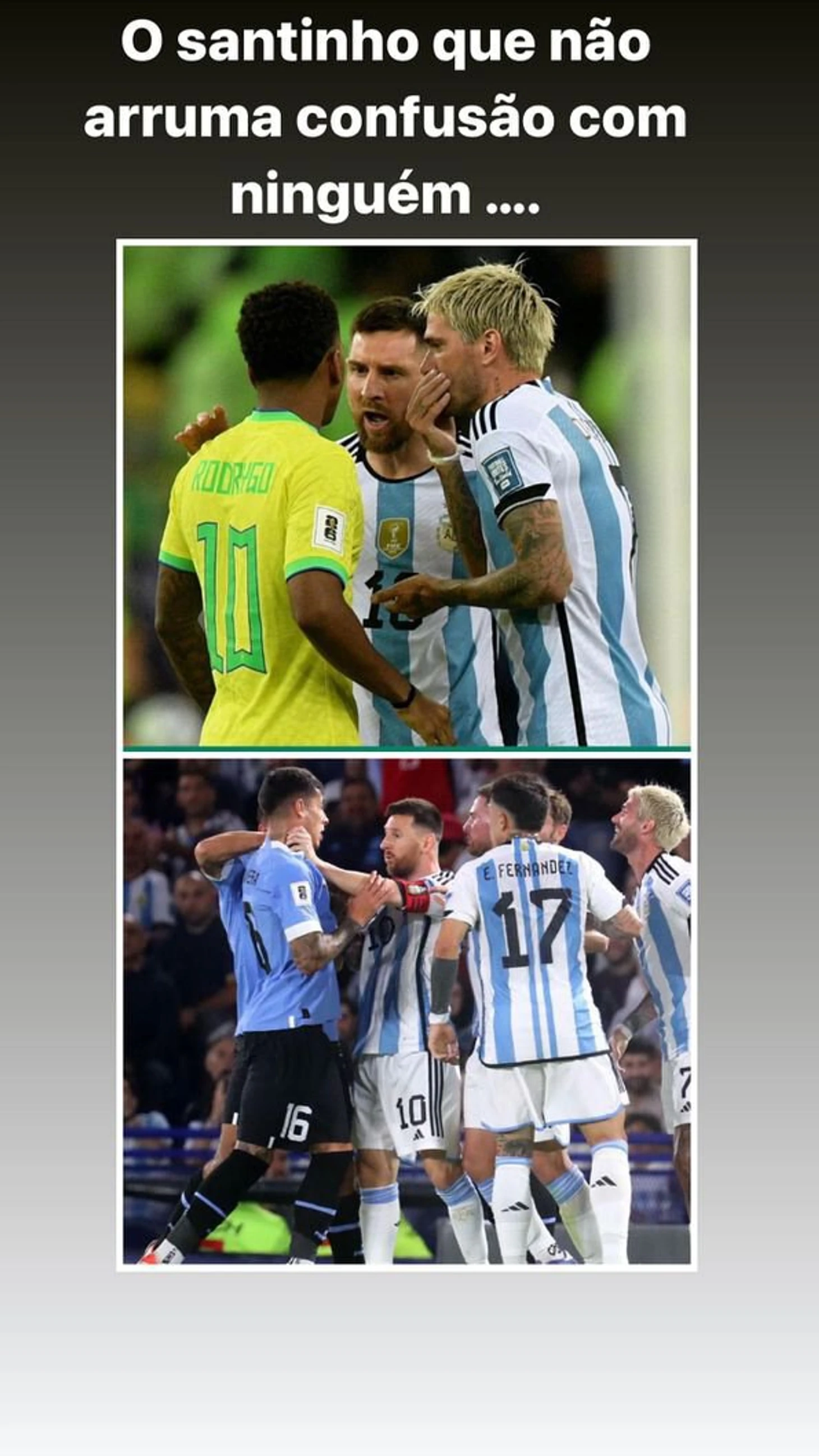 Месси прихватывал Родриго за шею сзади, когда Лео и хавбек аргентинцев Родриго де Поль спорили с бразильцем. Позже выяснилось, что Родриго назвал «ссыкунами» игроков сборной Аргентины, ушедших в раздевалку, говоря о задержке начала матча.