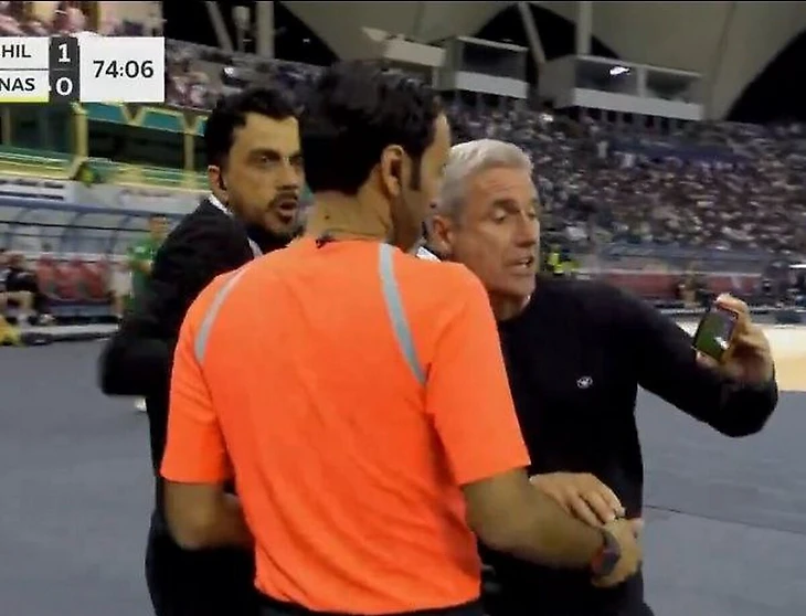 Тренер «Аль-Насра» на телефоне показывал арбитру повтор гола Роналду «Аль-Хилалю», призывая его засчитать. Мяч отменили из-за офсайда
