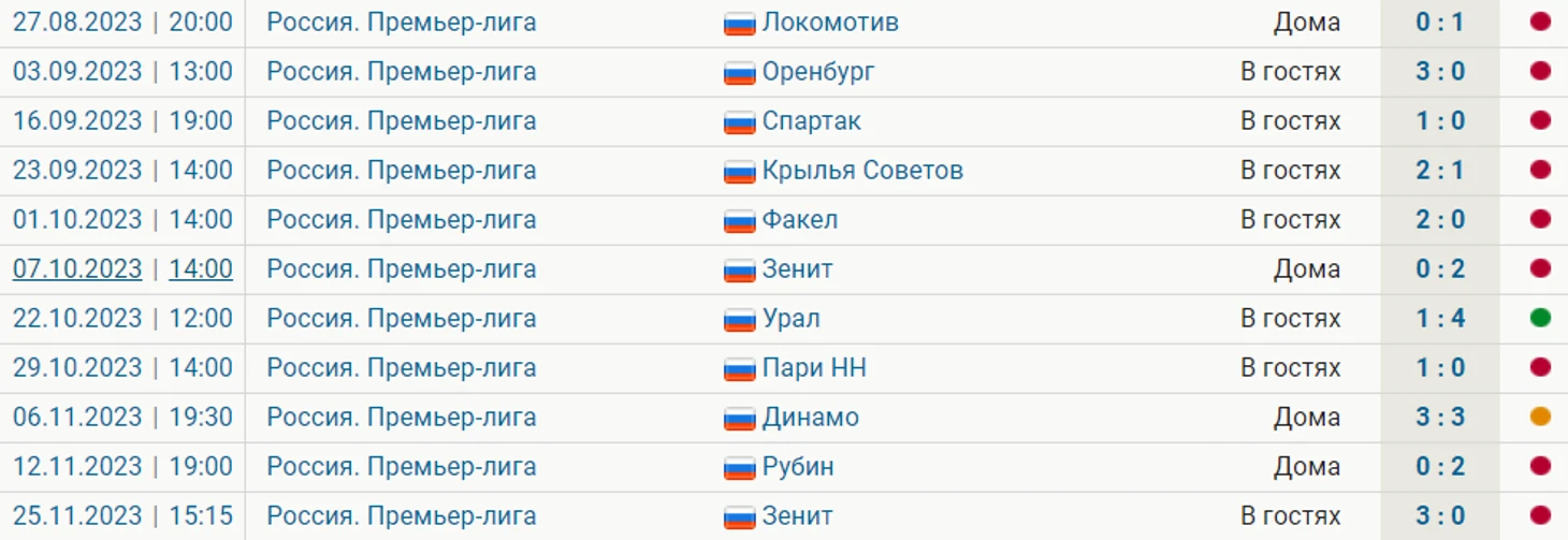 Команда Александра Точилина выиграла лишь один из 12 последних матчей в чемпионате и идет на последнем месте с 10 очками.