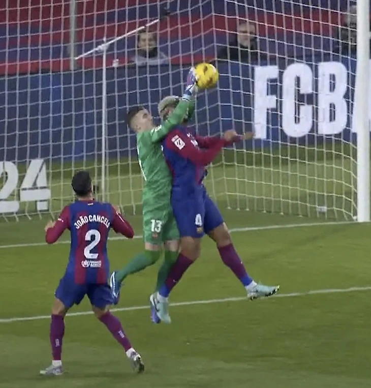 • Вратарь «Барсы» Пенья выронил мяч, столкнувшись с Араухо после штрафного «Альмерии». Гонсалес забил в пустые ворота