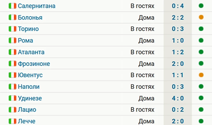 Команда тренера Симоне Индзаги продлила серию без поражений в чемпионате Италии до 11 матчей – 9 побед и 2 ничьих после поражения от «Сассуоло» (1:2) в конце сентября.