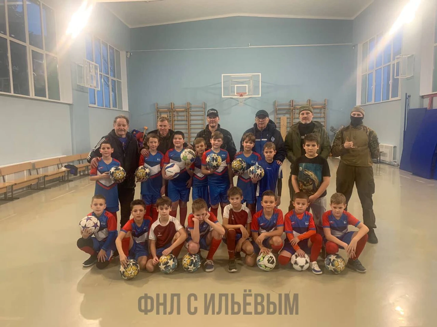 Тренеры привезли подарки местным детям из футбольной школы, которую открыл Соломатин.
