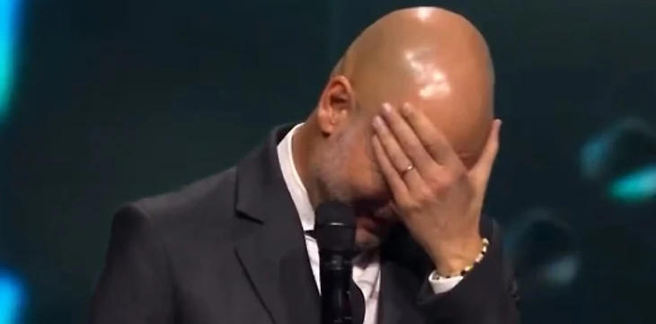 «Fuck!» Гвардиола на сцене The Best после вопроса о том, какая его команда лучше – «Барса» или «Сити». Тренер сделал фэйспалм