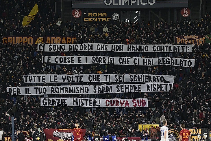 «Ты защищал нашу «Рому» и привел нас к победе... Вечная слава Жозе Моуринью!», «Спасибо Жозе – одному из нас», «Быть с тобой на одной стороне было привилегией», «Единственный, кто защищал нас, последний, кто сдался. Спасибо, Жозе», «Есть память, у которой нет контрактов» – такими были слова, адресованные португальцу.