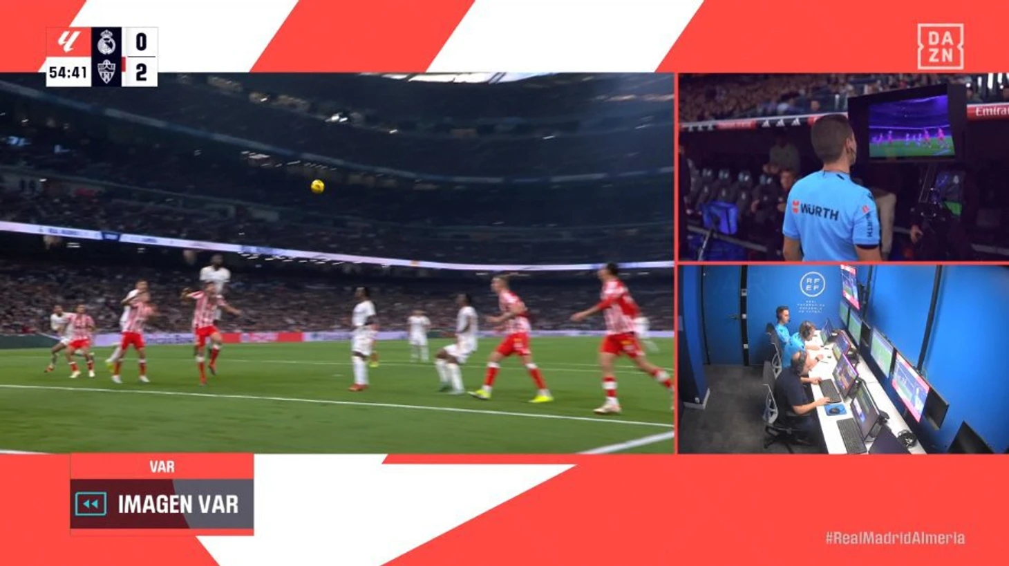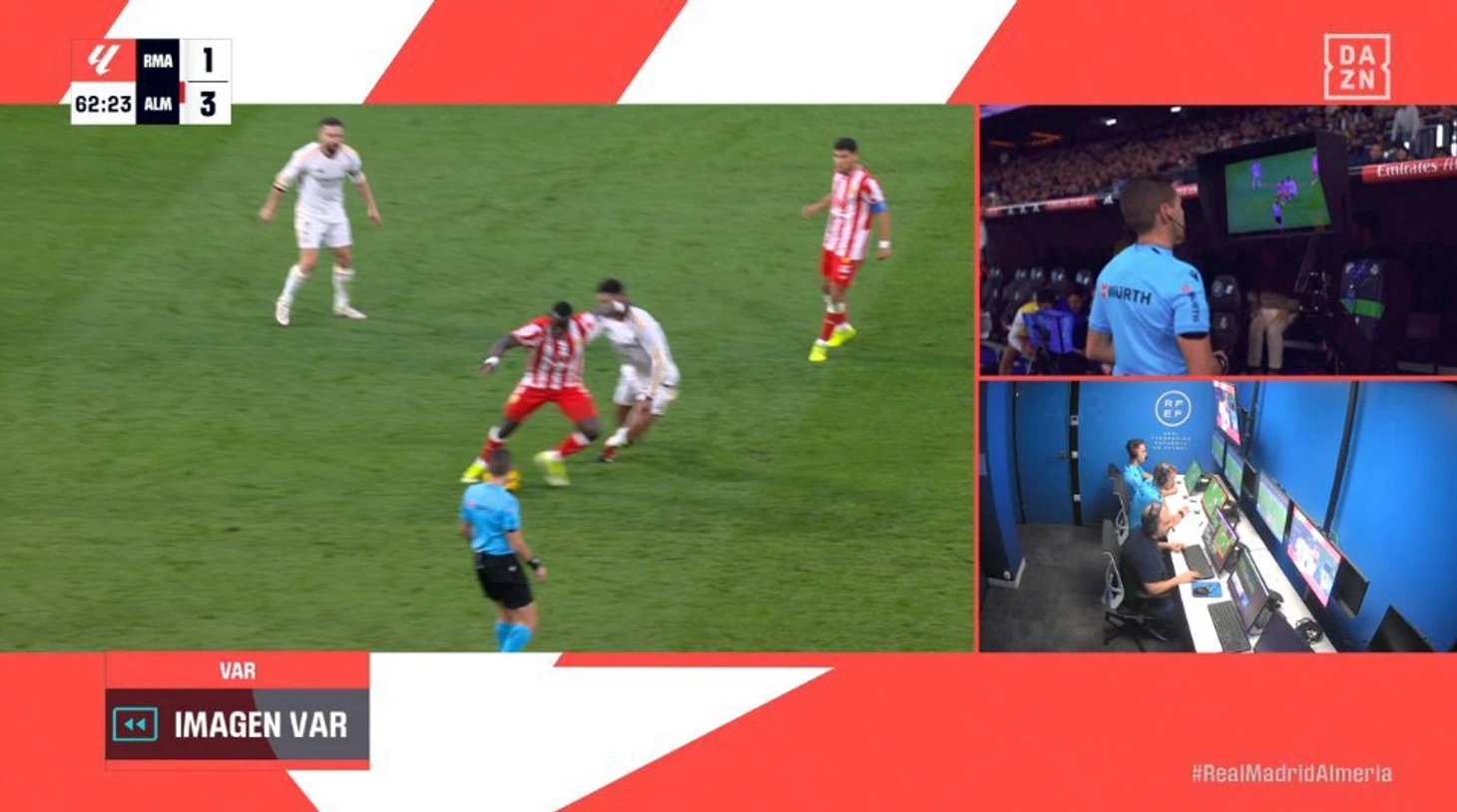 Первый гол «Реала» в этом матче на 57-й минуте был забит с пенальти, назначенного за игру рукой Кайки Фернандеса. На 64-й минуте при счете 1:2 после проверки ВАР был отменен гол Серхио Аррибаса в ворота «Реала», поскольку во время атаки хавбек «Альмерии» Дьон Лопи отмахнулся от Джуда Беллингема, ударив его по лицу. Спустя 3 минуты Винисиус Жуниор сравнял счет в матче (2:2) – гол был засчитан после проверки ВАР на предмет игры бразильца рукой.