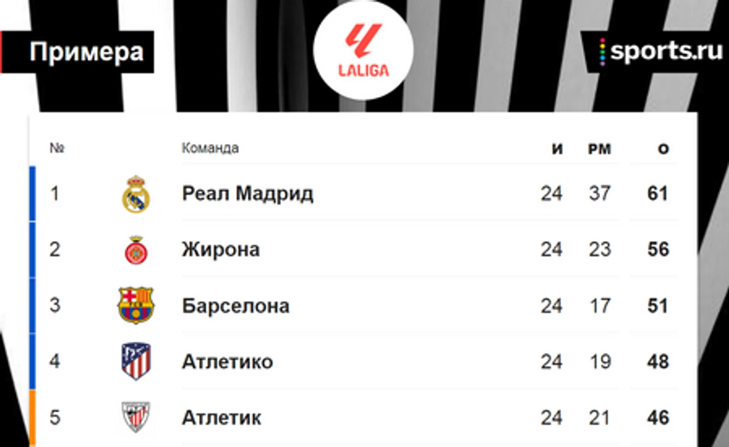 Третьим в альтернативной таблице идет «Атлетико» (42), в то время как сейчас мадридцы занимают 4-е место (48).