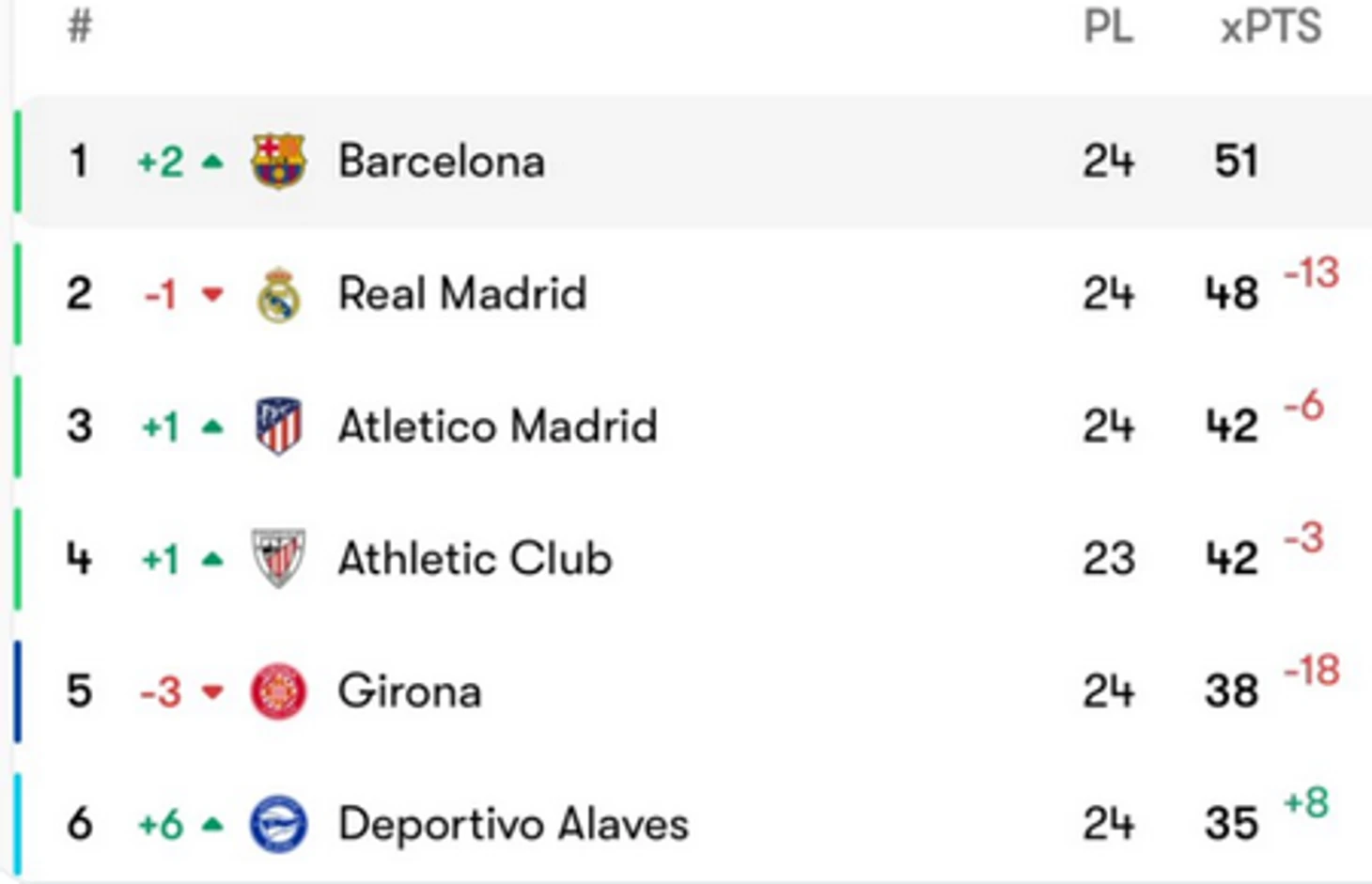 «Барса» лидировала бы в Ла Лиге с учетом очков согласно xG, «Реал» шел бы 2-м, «Атлетико» – 3-м, «Жирона» – 5-й