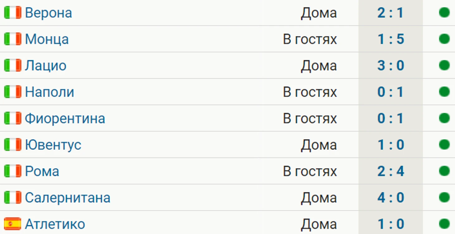 «Нерадзурри» выиграли все 9 последних матчей в ЛЧ, чемпионате и Суперкубке Италии в 2024 году. Такой серии у них не было с весны 2021 года.
