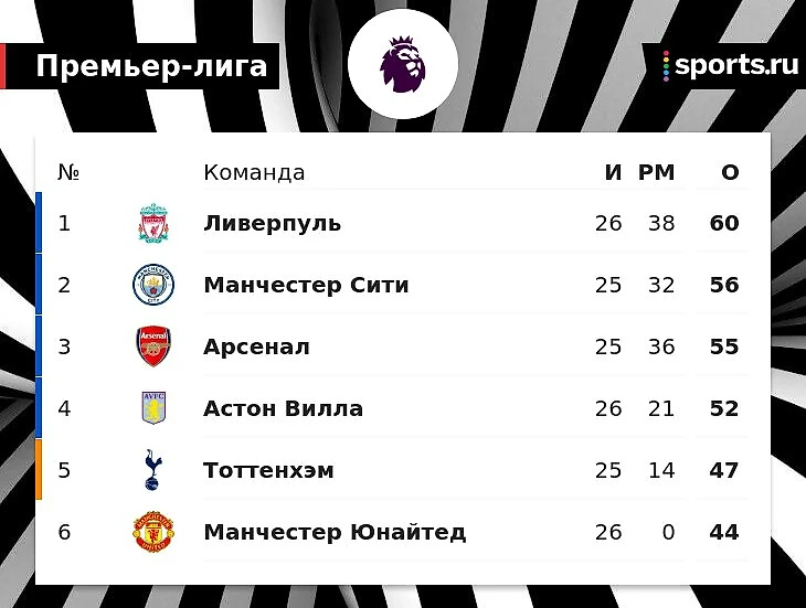 «МЮ» после поражения отстает от идущей 4-й «Астон Виллы» на 8 очков.