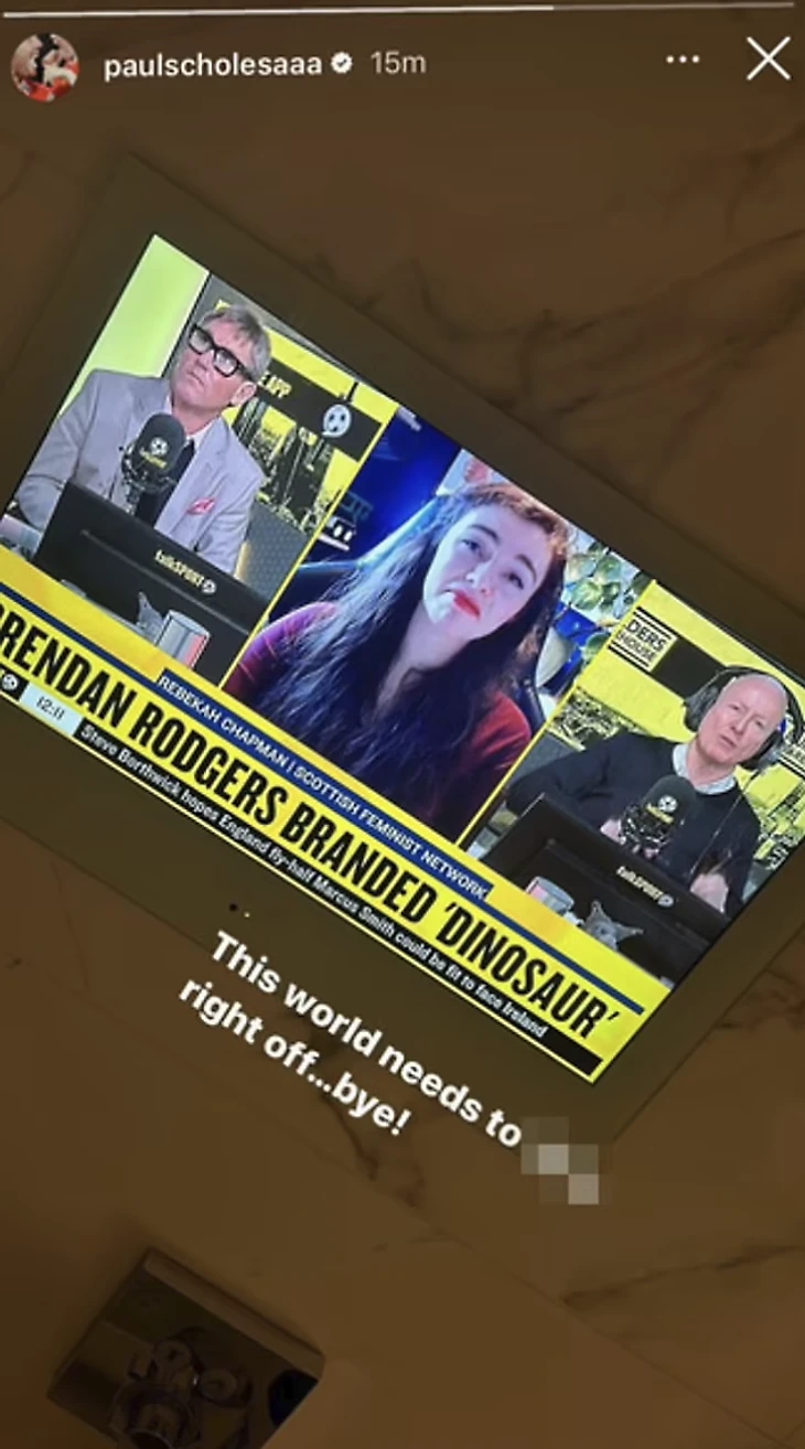 Бывший полузащитник «Манчестер Юнайтед» опубликовал в Instagram кадр из передачи, посвященной заявлению Роджерса и реакции на него, и написал: «Этому миру следует пойти на хер. До свидания!»