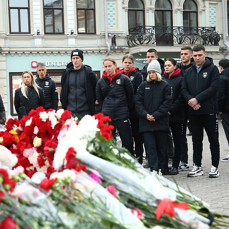 Игроки основы, ЖФК «Рубин», персонал и руководство клуба возложили цветы у мемориала в память о жертвах трагедии в «Крокус Сити», – говорится в заявлении казанцев.