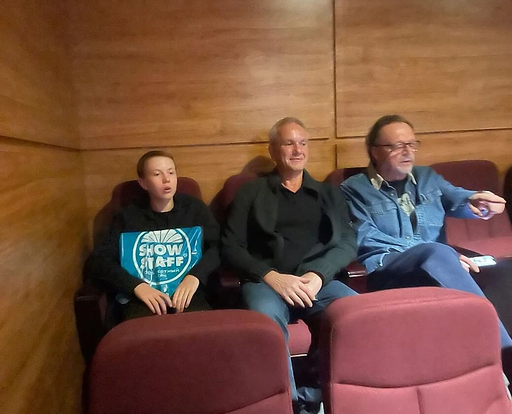 «Ложа «Крокуса». Сразу после 20:00 в ту страшную пятницу. Моя жена Оля, которая делает это фото, снимая меня с другом и его сыном, еще не видит того, что начинается у нее за спиной в партере… И то, что уже видим мы.