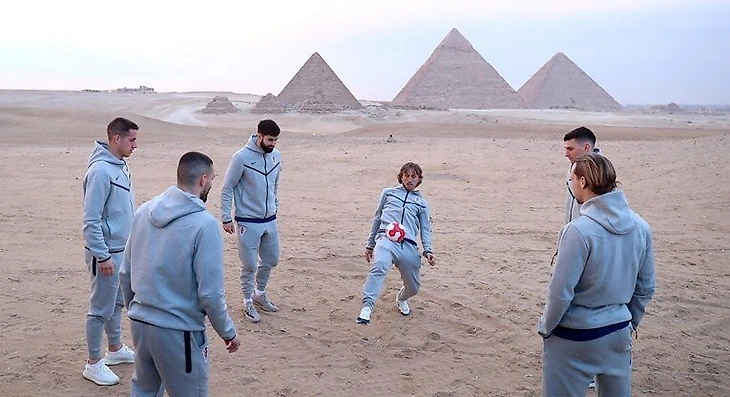 Лука Модрич, Йошко Гвардиол, Матео Ковачич и другие сыграли в «квадрат» на песке на фоне пирамид Хеопса, Хефрена и Микерина.