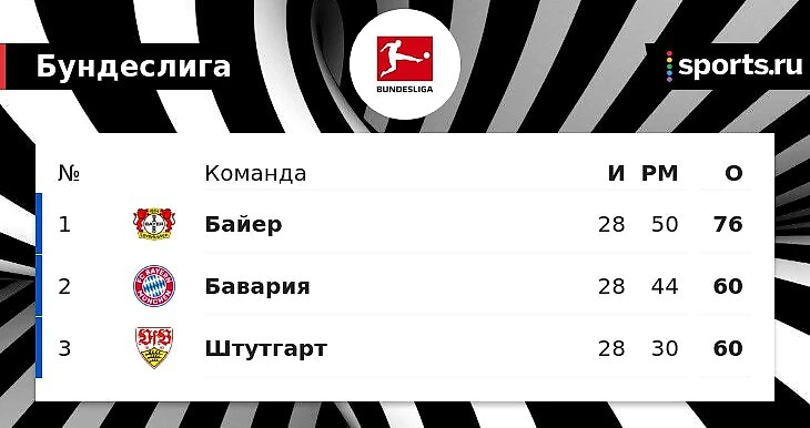 От лидирующего «Байера» «Бавария» и «Штутгарт» отстают на 16 очков.