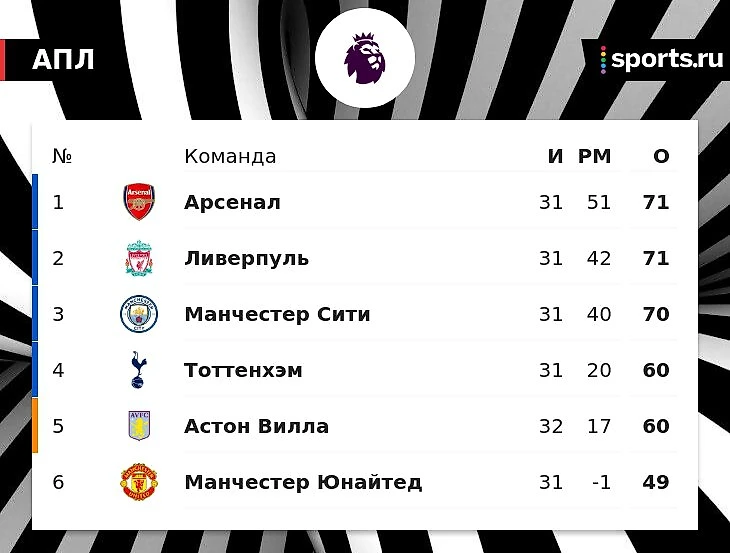 Конечно, я хочу, чтобы «Сити» победил. Есть у меня подозрение, что таблица по окончании чемпионата будет такой же, как сейчас. «Арсенал» выиграет благодаря разнице голов», – сказал болеющий за «горожан» певец.
