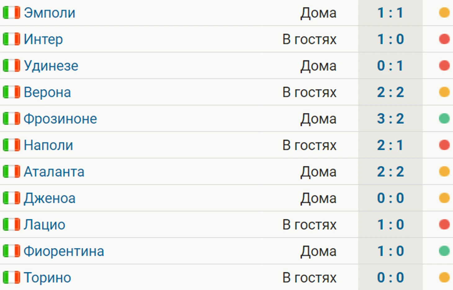 Начиная с 3 марта «бьянконери» в чемпионате победили только один раз – «Фиорентину» (1:0). Также у них два поражения и три ничьих.