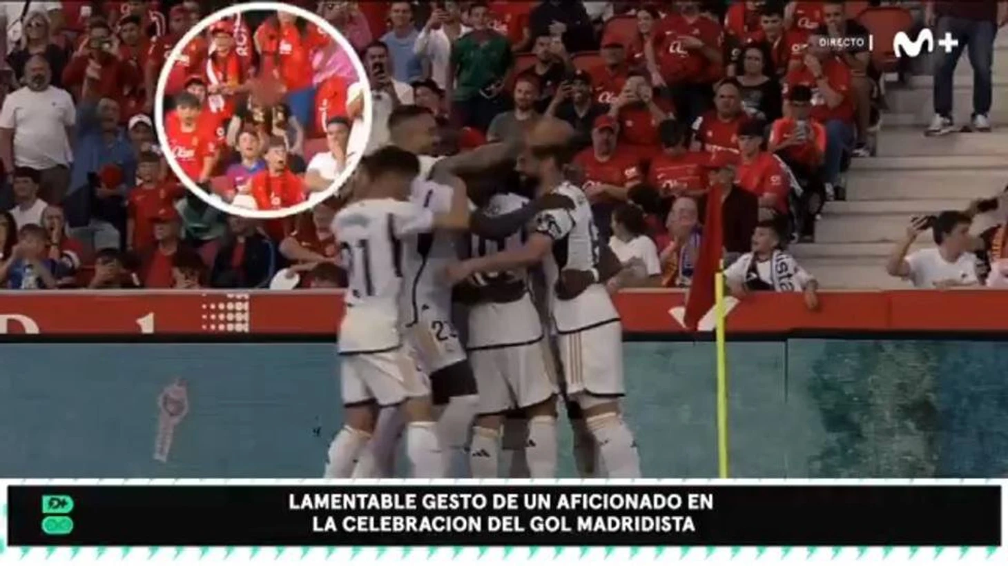 На камерах Movistar+ зафиксировано, как юный болельщик имитирует жесты обезьяны во время празднования гола мадридцами. Помимо этого, как сообщалось ранее, в этот же момент один из фанатов бросил в сторону праздновавших игроков бутылку с водой.