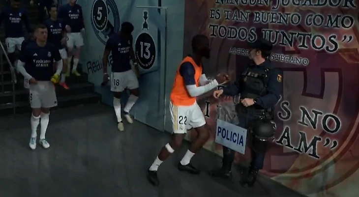 Рюдигер решил разыграть полицейского, охранявшего раздевалку «Реала». Игрок выскочил на него и попытался напугать. Сотрудник отреагировал на это улыбкой.
