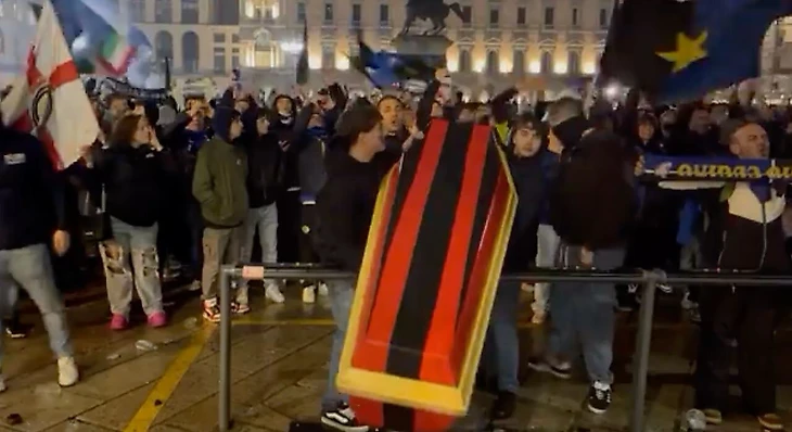 Фанаты «Интера» принесли гроб в цветах «Милана» на празднование чемпионства