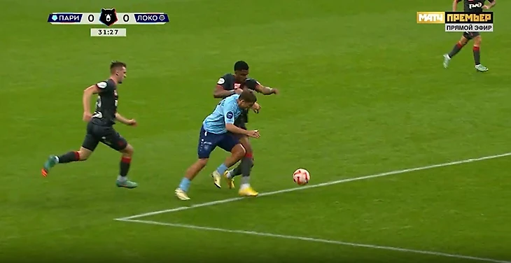 Два пенальти в ворота «Локо» назначил судья Цыганок в игре с «Пари НН» – за фол Ньямси на Кутателадзе и удар ногой Сильянова по лицу Каккоева