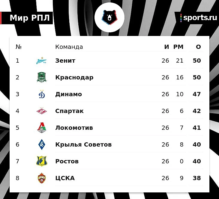 «Ростов» выиграл 6 из 8 матчей в РПЛ после зимней паузы и уступил только «Спартаку». Команда Карпина вышла на 7-е место, опередив ЦСКА