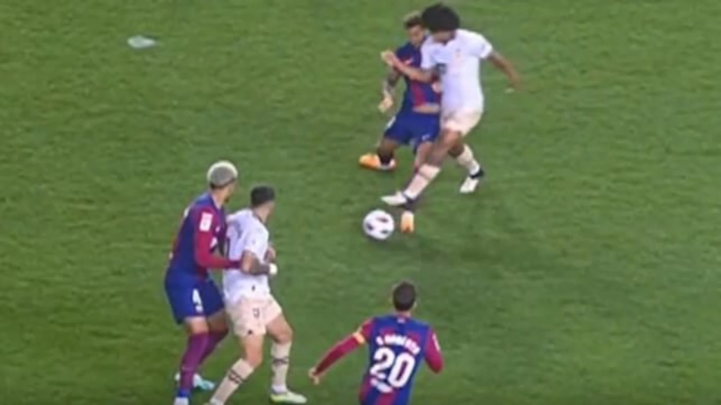На 46-й минуте матча 33-го тура Ла Лиги защитник «блауграны» Иньиго Мартинес в своей штрафной площади выбил мяч из-под ног хавбека Петера Федерико, но бедром врезался в доминиканского футболиста и сбил его.