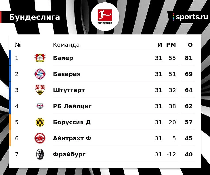 На данный момент участие в Лиге чемпионов гарантировали себе «Байер», «Бавария», «Штутгарт», «Лейпциг» и «Дортмунд».