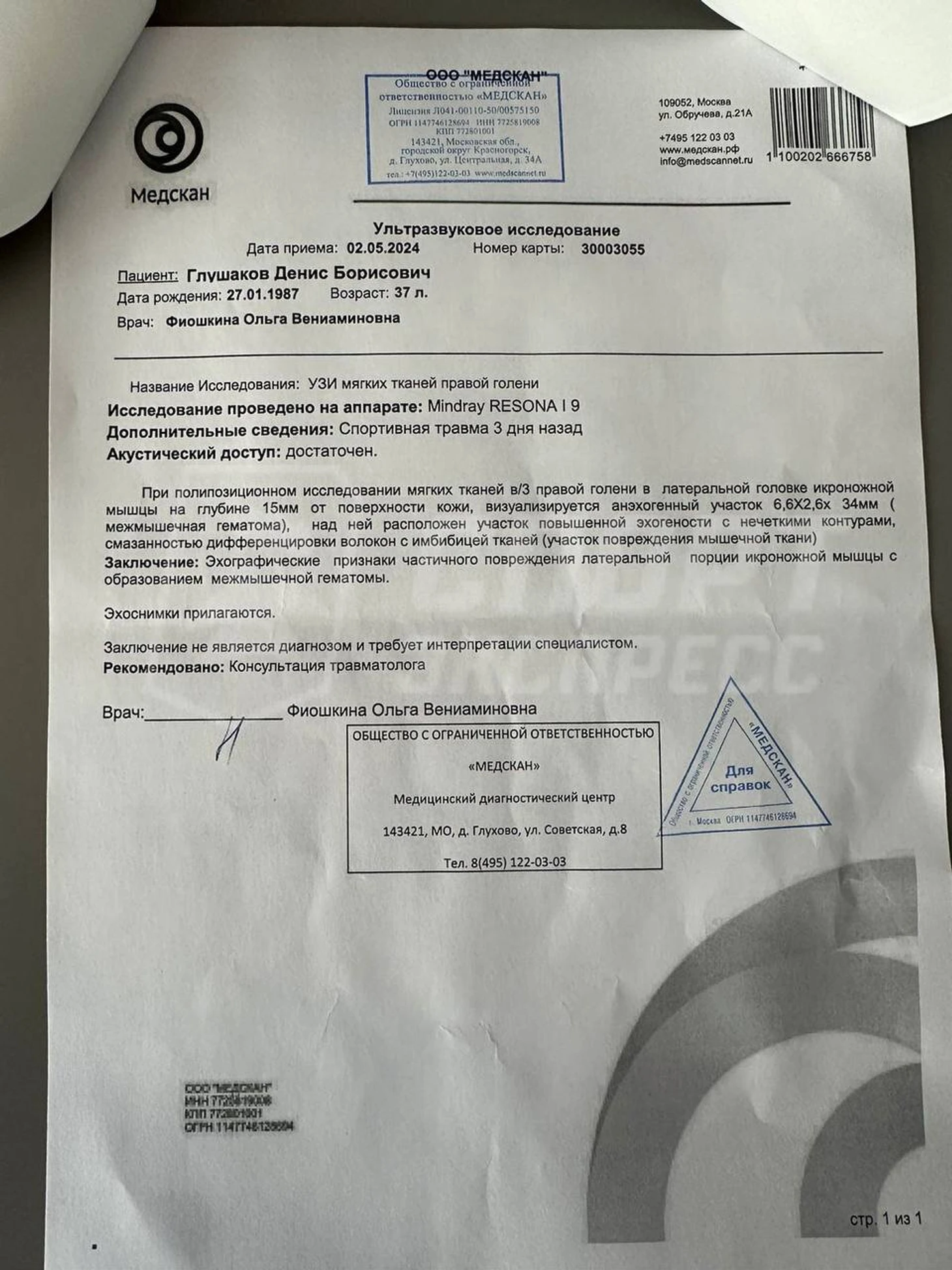 – Во‑первых, это какой‑то непонятный бред, что пишут. Во‑вторых, у меня надрыв икроножной мышцы.