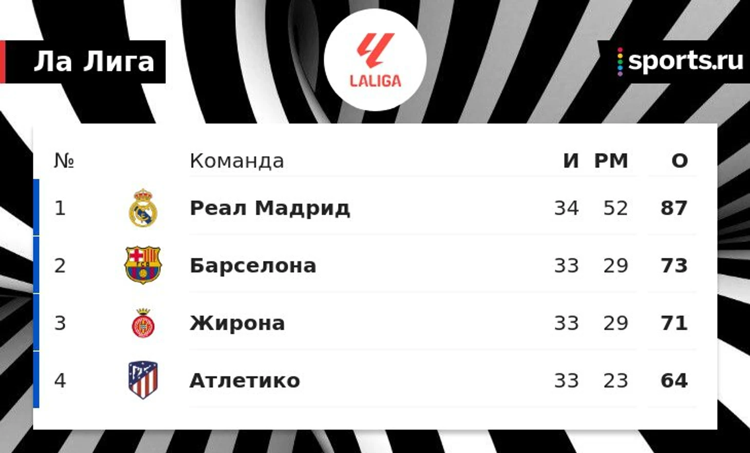 Для победы в Примере мадридцам необходимо набрать одно очко, однако они могут стать обладателями титула и в том случае, если сегодня «Барселона» не сумеет обыграть «Жирону».