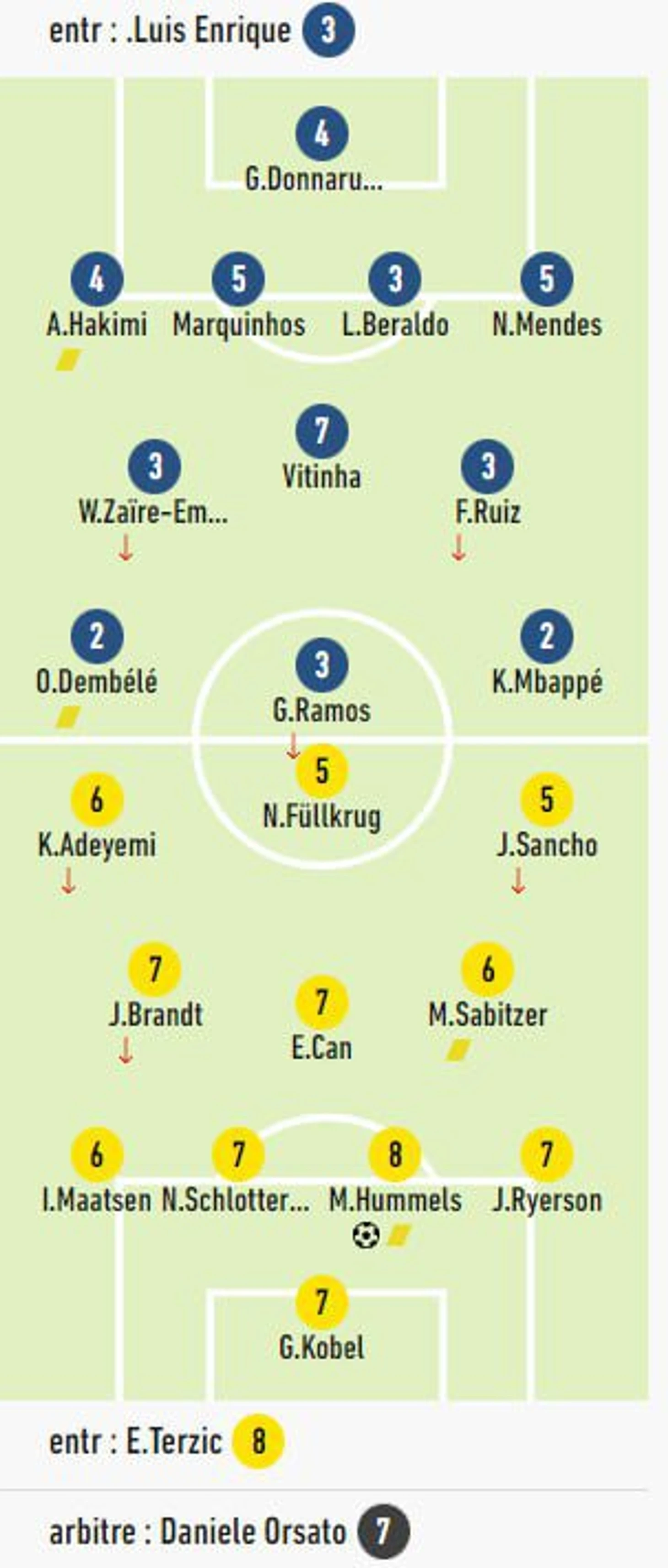 L’Équipe по итогам парижской встречи оценил игру Мбаппе и Дембеле на 2 балла из 10 – это самые низкие оценки в обеих командах.