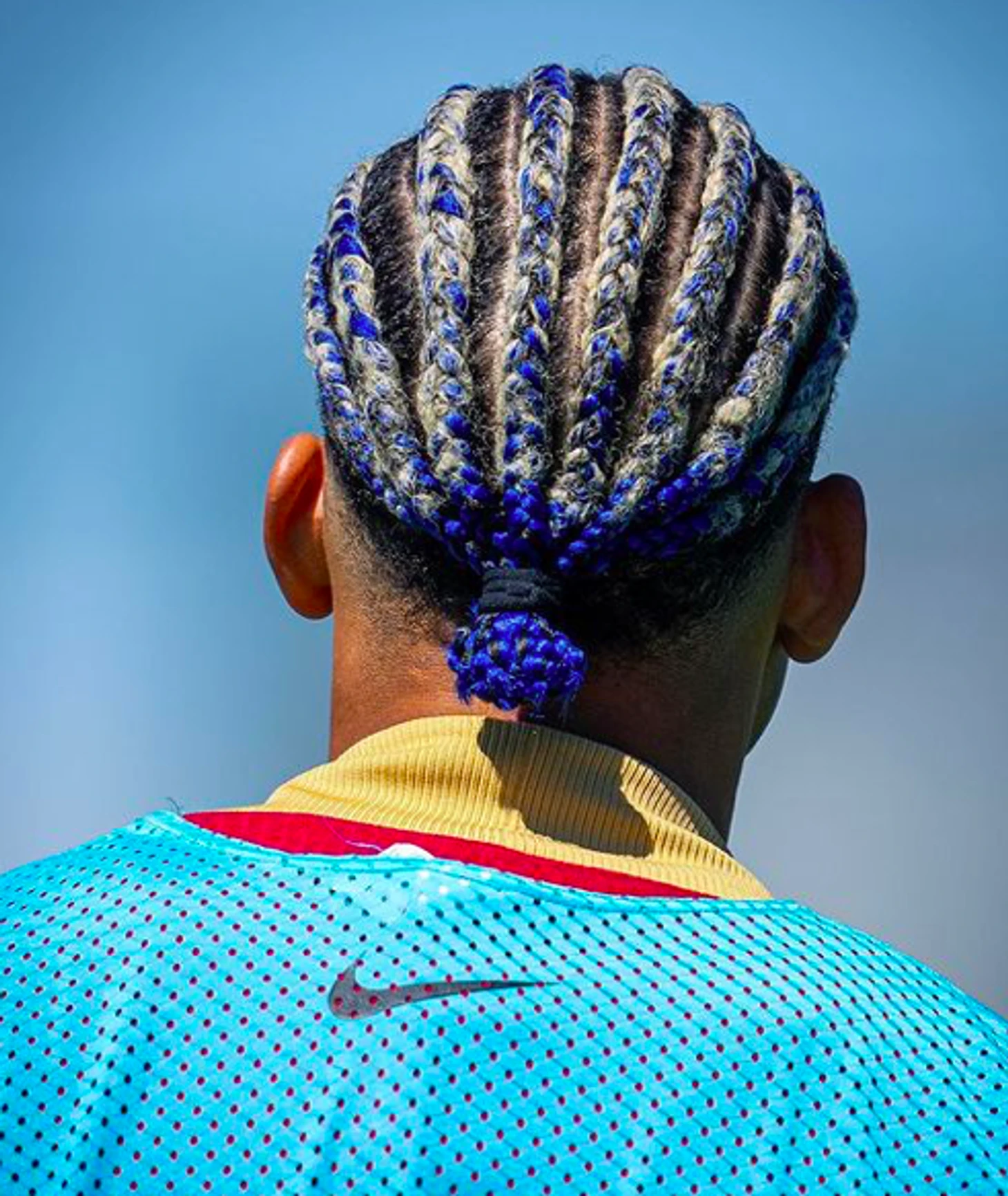 Защитник появился на тренировке «Барселоны» с новой прической – косички с бело-синими вставками в цветах флага Уругвая.