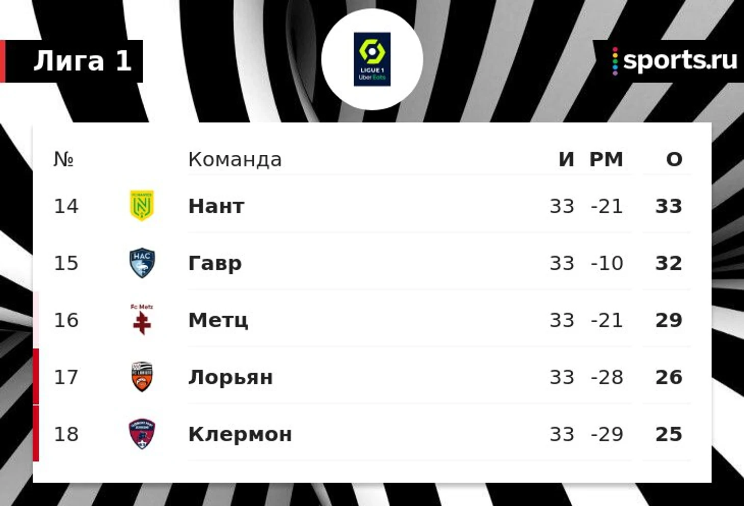 У «Лорьяна» разница составляет минус 28, у «Метца» – минус 21.