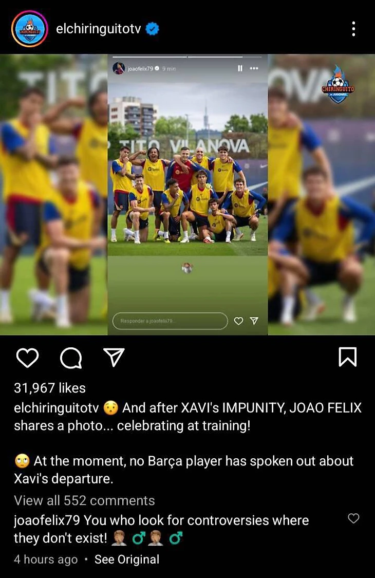 Феликс о том, что он выложил веселое фото после увольнения Хави: «Вы ищете конфликты там, где их нет»