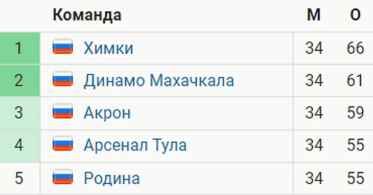 «Химки» выиграли Первую лигу. «Акрон» стал 3-м, «Арсенал» – 4-м