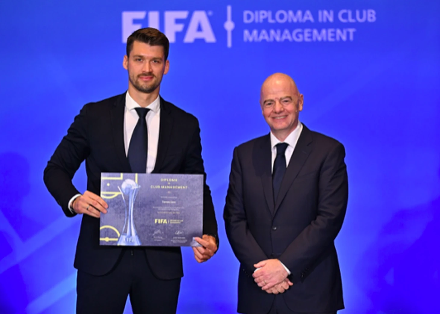 «Счастлив получить диплом ФИФА по клубному менеджменту спустя 18 месяцев. Эта программа предназначена для всех, связанных с футболом, от игроков до генеральных директоров и спортивных директоров клубов по всему миру.