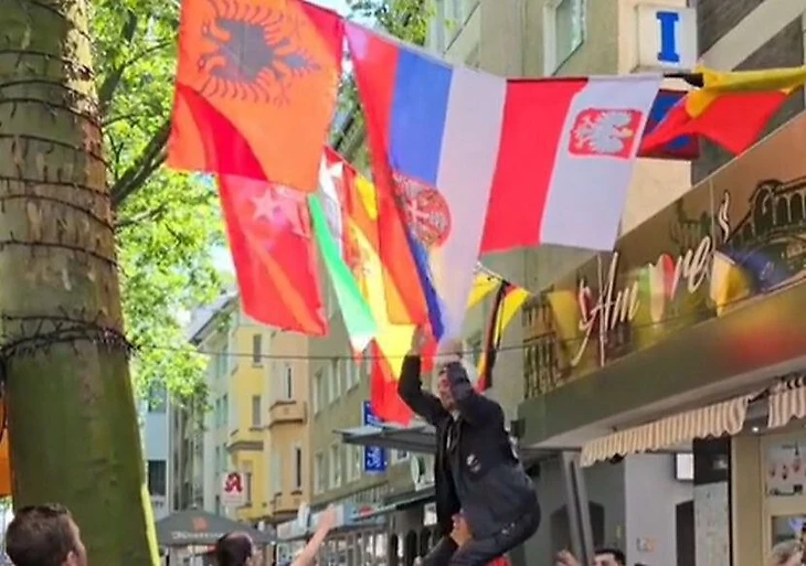 Албанский болельщик сорвал сербский флаг на пешеходной улице в Германии