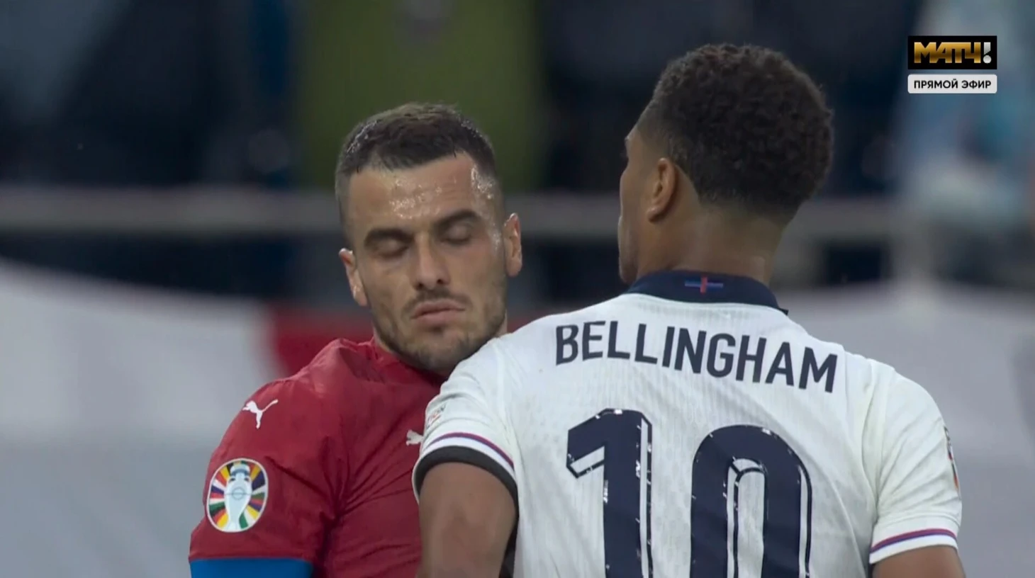 Беллингем плечом толкнул Костича в грудь во время паузы в игре Англии с Сербией