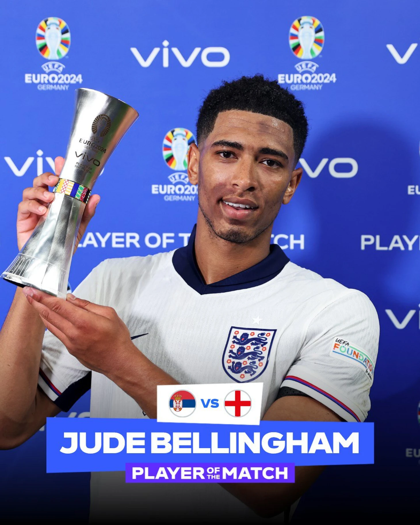 По итогам игры Евро-2024 был награжден хавбек Джуд Беллингем, который принес англичанам победу своим голом на 13-й минуте – 1:0.