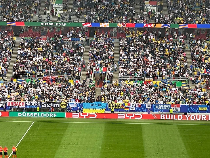 Флаг Украины с надписью: «Верните нам выборы» вывесили на матче со Словакией.