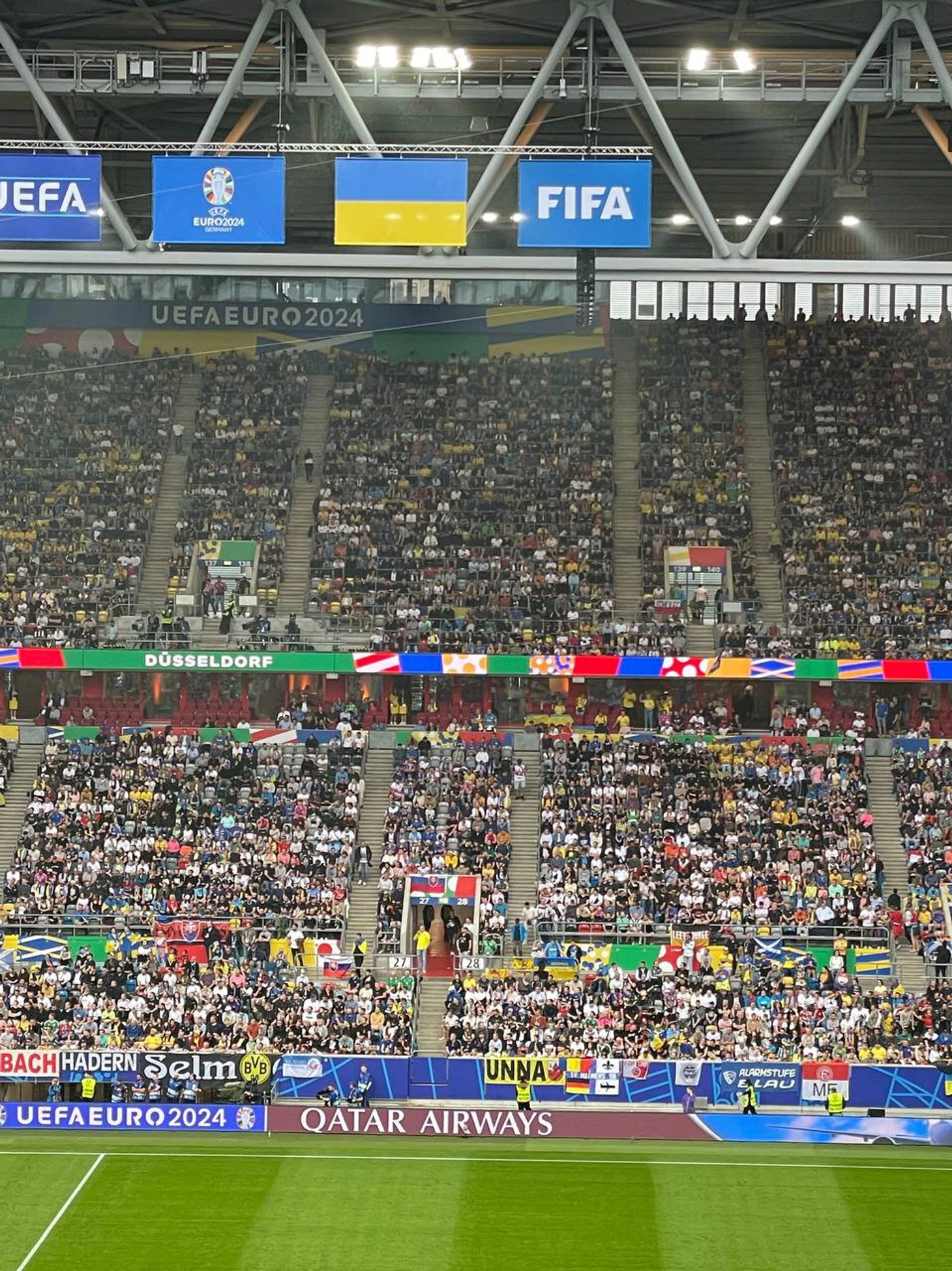 Флаг с надписью на английском языке был замечен на одной из трибун «Меркур Шпиль-Арены» в Дюссельдорфе, но позже его убрали.