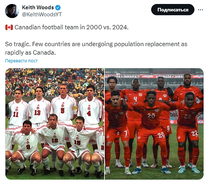 Активист Кит Вудс, характеризуемый в различных источниках как человек ультраправых взглядов, опубликовал фотографии сборных Канады в 2000 и 2024 годах.