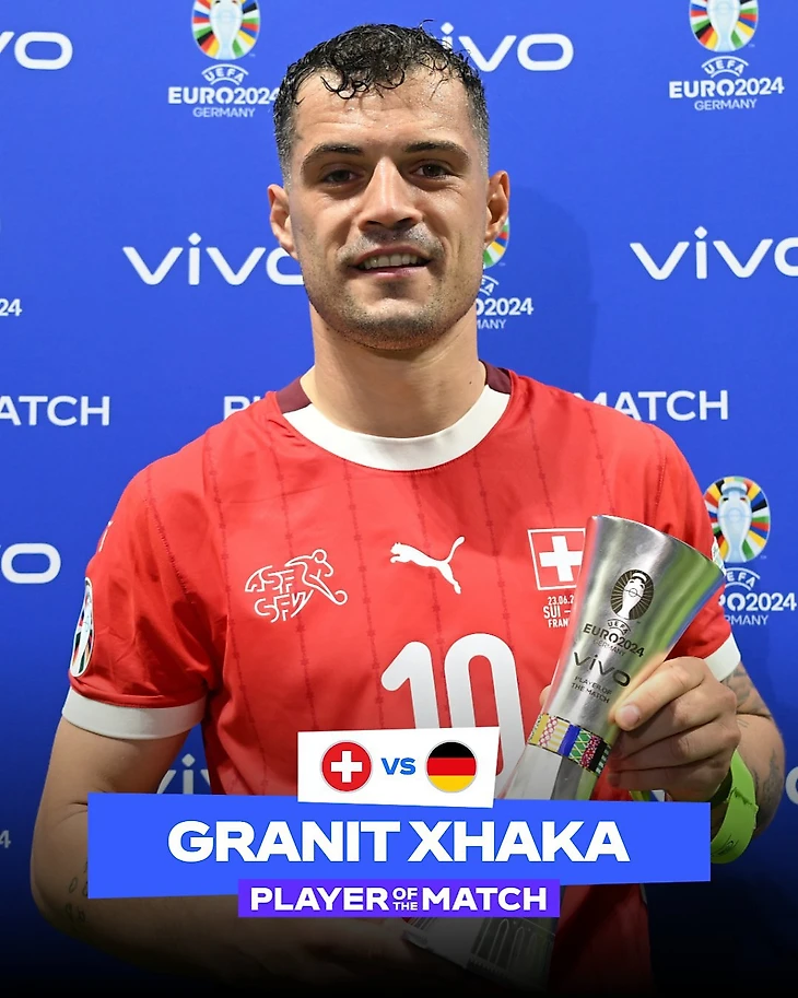 По итогам игры заключительного тура группового этапа Евро-2024 награду получил швейцарский хавбек Гранит Джака. Полузащитник, представляющий «Байер», не отметился результативными действиями, но пробежал 11,8 километра (максимальная скорость – 31,4 км/ч) и пасовал с точностью 84%.
