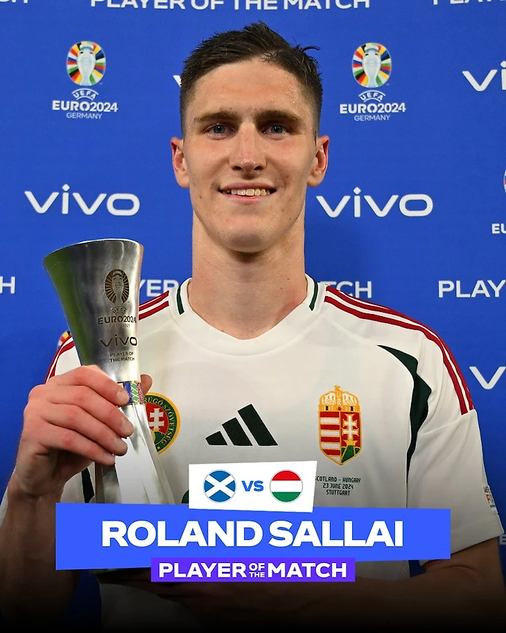 По итогам матча заключительного тура группового этапа Евро-2024 приз получил венгерский полузащитник Роланд Шаллаи, отметившийся результативной передачей на 10-й добавленной ко второму тайму минуте.