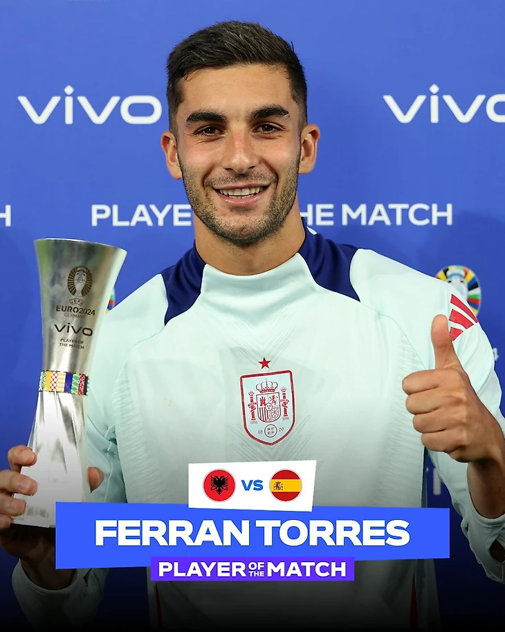 По итогам игры заключительного тура группового этапа Евро-2024 награду получил испанский вингер Ферран Торрес.