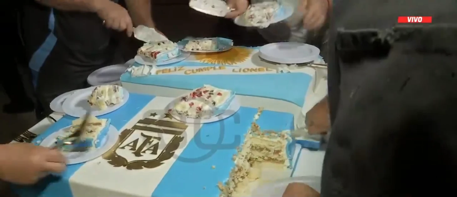 Футболист праздновал день рождения с партнерами по национальной команде в отеле Short Hills и помахал рукой из окна поклонникам, которые пришли поздравить его. На парковке им всем дали по кусочку торта с логотипом сборной Аргентины.