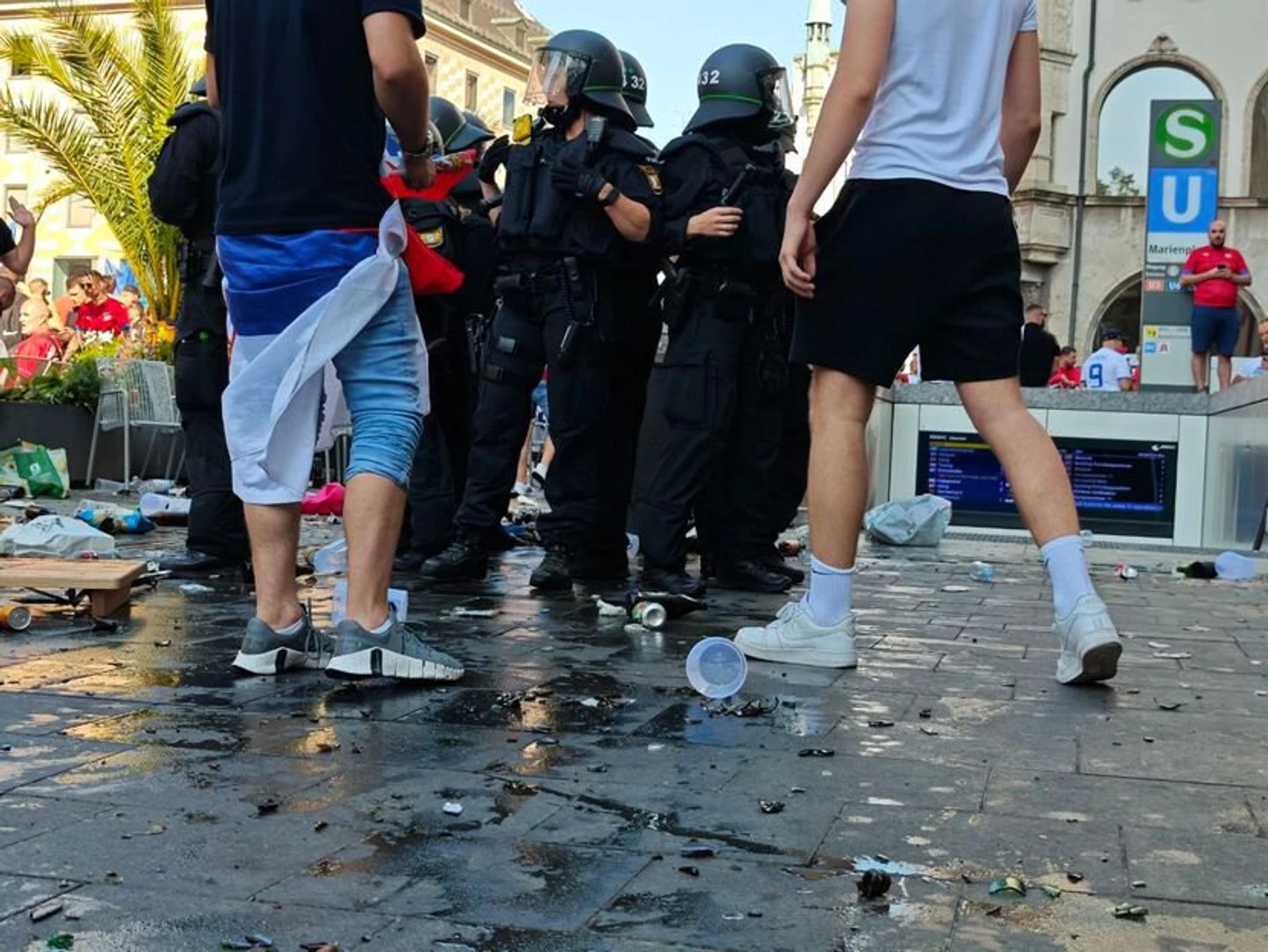 Примерно за четыре часа до начала матча в центре Мюнхена полиция арестовала одного сербского фаната за нарушение порядка. После чего другие болельщики попытались отбить его у полиции, что привело к столкновениям.